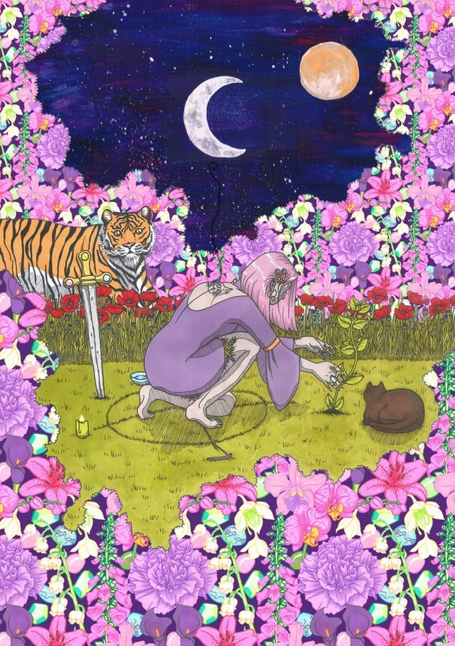Art prints of ethereal women and landscapes. Also cute stickers and clothes! (I’m particularly partial to those) Also check out her Redbubble.