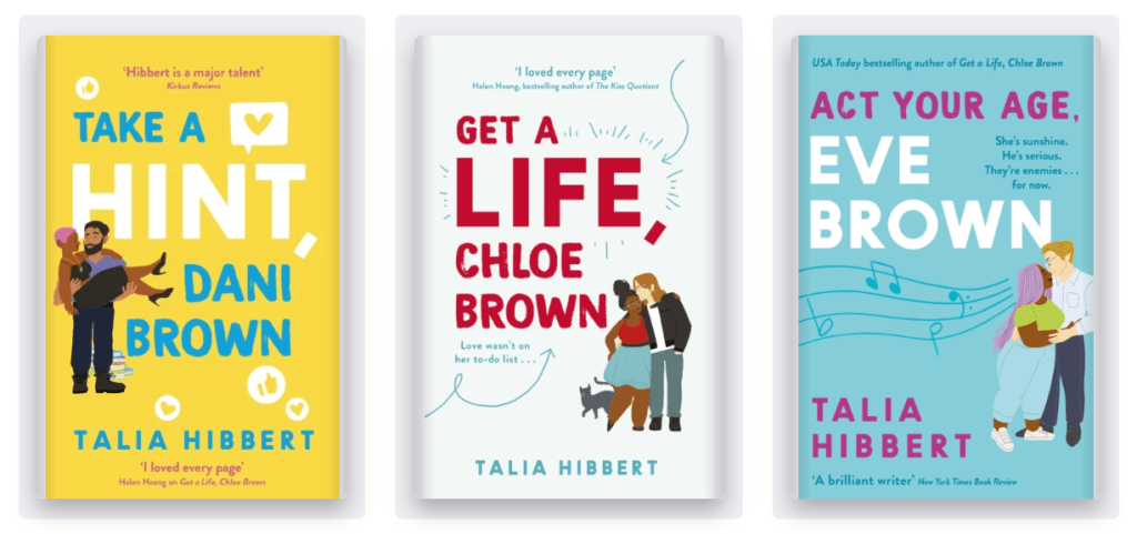 You can buy each of the books through my bookshop links: Get a life Chloe Brown, Take a hint Dani Brown, Act Your Age Eve Brown